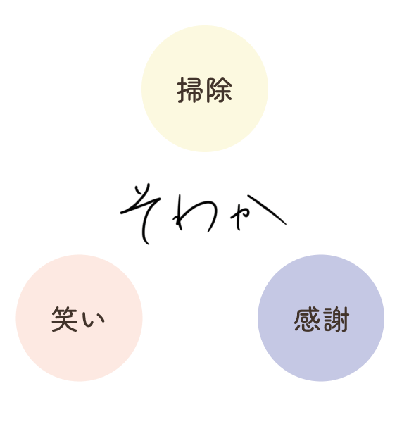 清潔な環境、あふれる笑顔、そして感謝の心。その積み重ねが“そわか”の理念です。